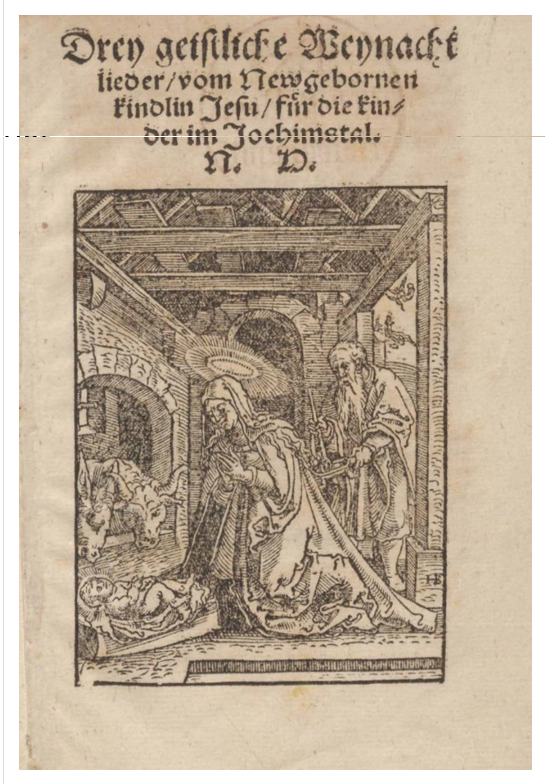 - met Kerst dus: Drey Geistliche Weinacht Lieder, vom Newgebornen kindlein Jhesu, für die kinder im Joachimstal is waarschijnlijk zijn eerste publicatie (de zetter heeft wel een potje gemaakt van de teksten). Ons lied is hier het eerste (Liedboek, gezang 147).