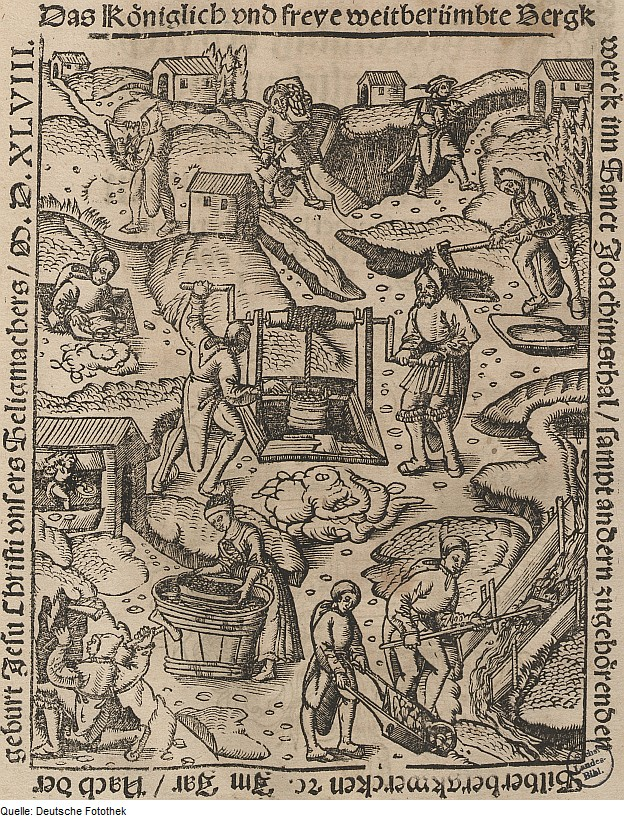 Hij vertrouwde de ontginning van de mijn toe aan een ‘mijn-hoofdman’ (BergHauptmann; in het Duits is Bergwerk=Mijnbouw). Heinrich von Könneritz, tevens muntmeester, die naast regelgevend werk, en opzicht, ook het metallurgisch onderzoek bevorderde (o.a. door samenwerking met Georg Bauer, beter bekend als Agricola, de ‘vader van de moderne mineralogie’). Zijn vrouw Barbara von Breitenbach was dan weer zeer actief bij de constructie van het sociale weefsel van deze nieuwe ‘samenleving’. Könneritz leidde de exploitatie in goede banen en binnen 20 jaar groeide Joachimstal uit tot de tweede stad van Bohemen en telde meer dan 20.000 inwoners. Alle genoemden waren bekend met Luther en zijn gedachten en het genoemde echtpaar was zelfs goed met hem bevriend, en hield — gezien een bemoedigende brief van Luther uit 1524 aan Nicolaus Herman — in moeilijke tijden ook de cantor-schoolmeester Nicolaus Herman de hand boven het hoofd. Luthers vader was trouwens… mijnbouwer.